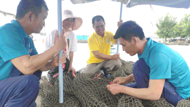 检查出破洞后,接下来考验的就是他们的补网能力,别看队员们平日一副不拘小节的样子,当他们坐在网衣前缝补破洞时,眉宇间都露出了严肃的神色。